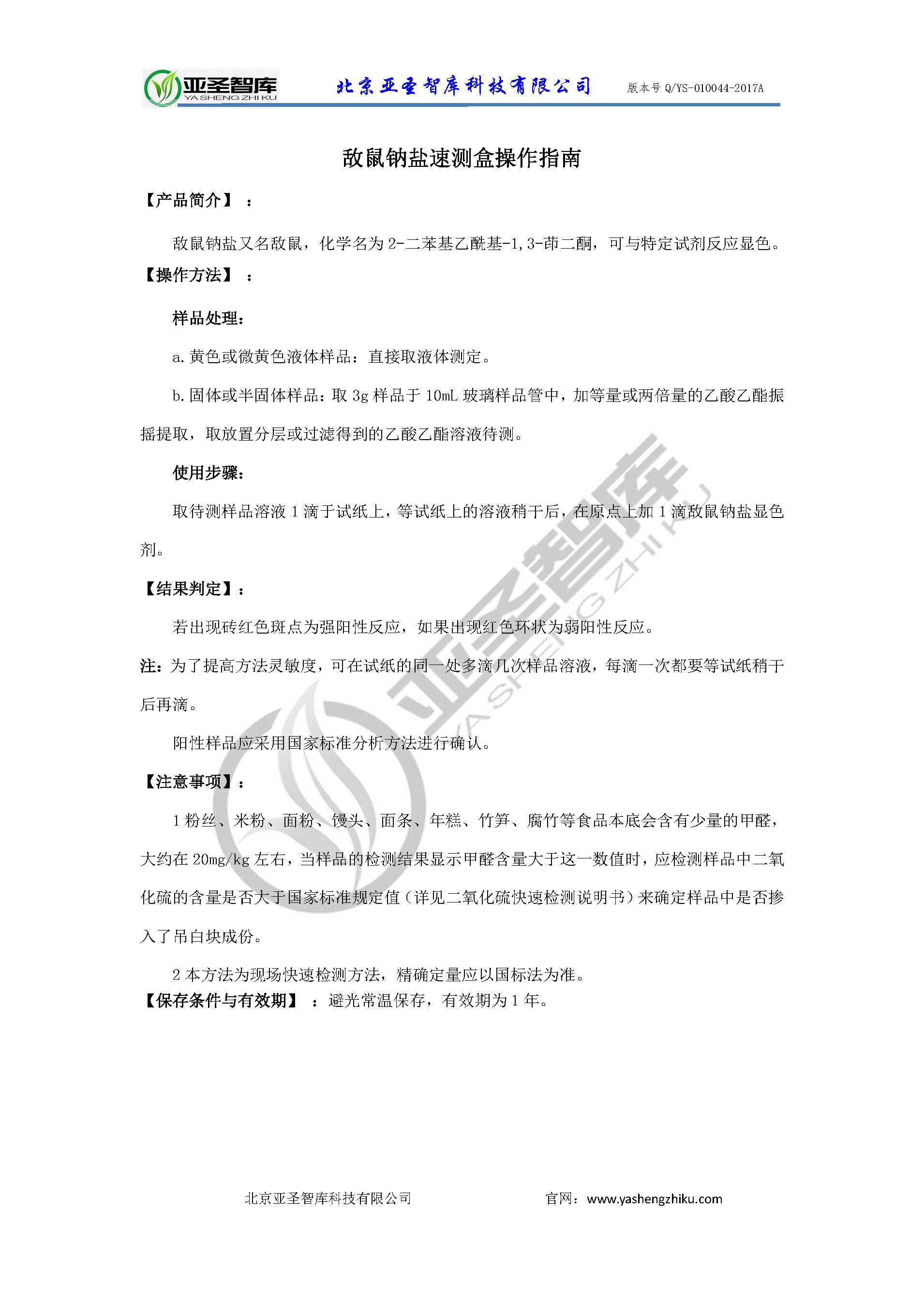 快速检测 敌鼠钠盐速测盒