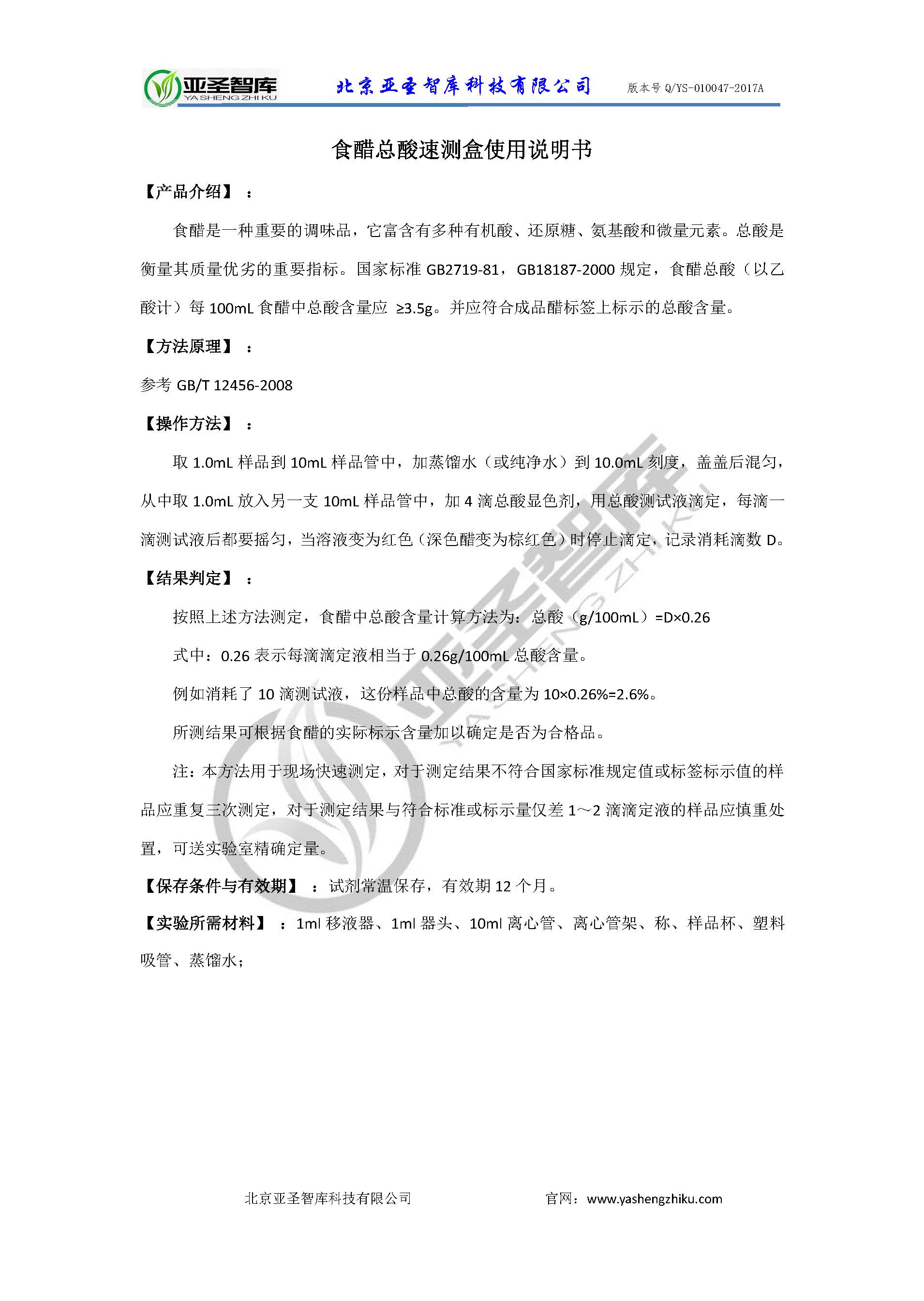 快速检测 食醋总酸速测盒