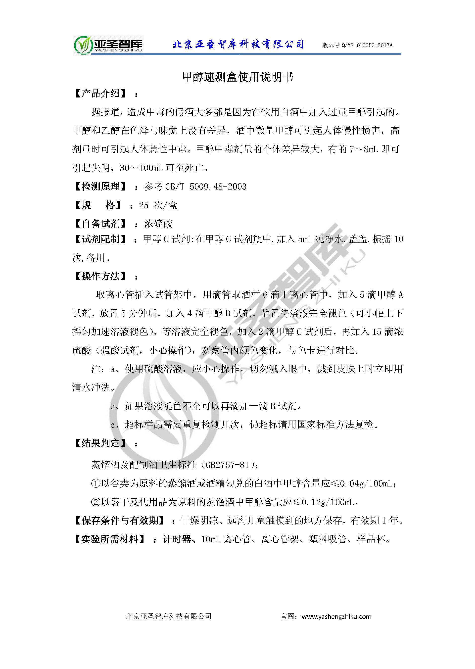 快速检测 甲醇速测盒